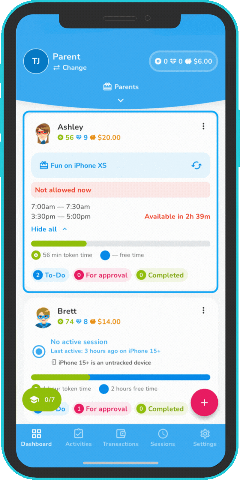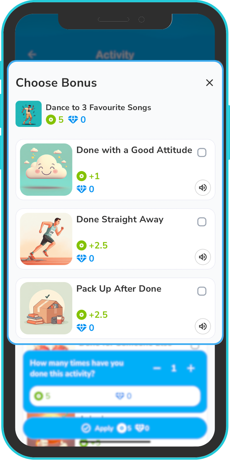 The most frustrating part of being a parent is having to ask your children to do things again and again – ugh, the nagging is exhausting. The magic of ScreenCoach lies in offering incentives for children to volunteer for their tasks – imagine that!With ScreenCoach’s gamified reward system, kids earn tokens for screen time and gems for pocket money. It turns tasks into a fun challenge and builds real motivation. BONUS Rewards for Positive Habits!Kids can earn bonus tokens when they go above and beyond. You can offer custom bonuses to reward behaviour you’d like to encourage – such as:🌟 Completing a task with a good attitude – get 30% more tokens!🌟Finishing something before it’s due – get 50% more tokens!🌟Doing something without being asked – get 100% more – get 100% moreExample:Jimmy usually earns 3 tokens for unpacking the dishwasher. But today, he did it immediately, without moaning AND without being reminded. Great job, Jimmy! 🎉 Mom awards bonus tokens for that extra effort! 😊🙂