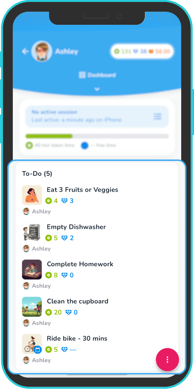 They could earn screen time tokens and Pocket money gems for unpacking the dishwasher, or