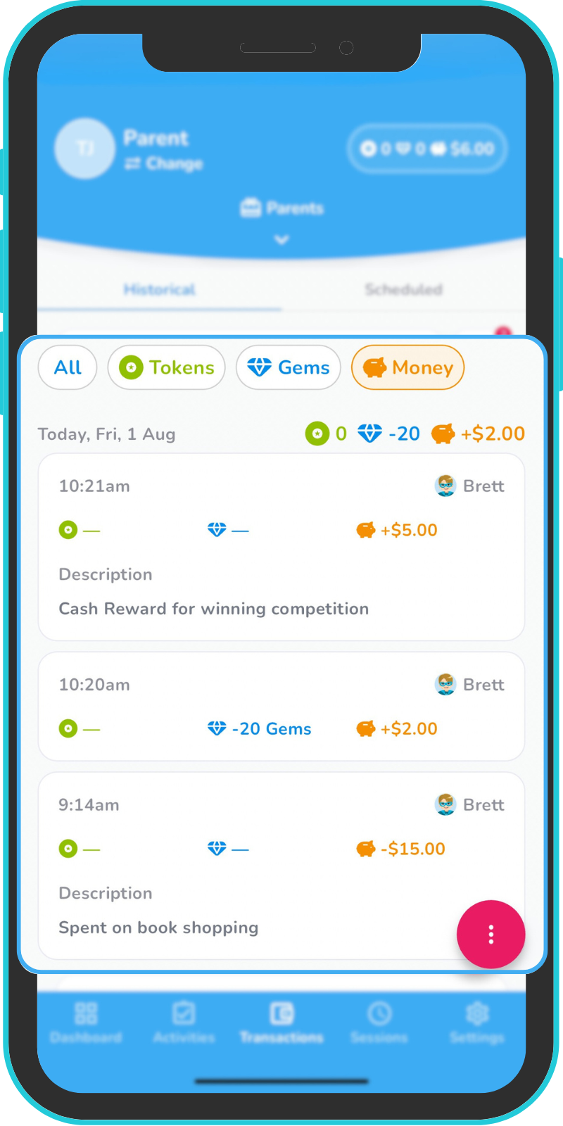 *NOTE: The pocket money account (with debits, credits and balance) that you see in ScreenCoach is a virtual currency – it is not real cash in a bank account.In this modern world, with card purchases and automatic expenses, you can track your kids’ pocket money balance with ScreenCoach. This means whether you buy things for them at the store or online, if they have earned additional money via Gems, or are gifted birthday money, you just need to record each deposit or expense in Screencoach. The kids can also add their own expenses!If you want to “convert” some of the child’s ScreenCoach balance to their own debit card, you can transfer real money from your bank account to the child’s debit card. Then, add an expense in Screencoach for the same amount with a note. The virtual balance in Screencoach will update to reflect the transfer of funds, and the child can check at any time how much they have saved and how much they have spent.