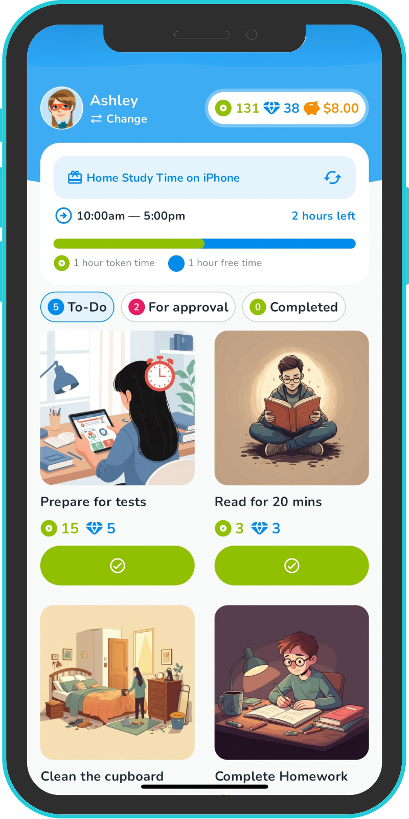 With ScreenCoach, kids earn screen time tokens through chores, schoolwork, exercise, and other real-world activities. Instead of restrictions, it uses positive parenting strategies to teach effort and responsibility. Kids are motivated to contribute, feel empowered, and gain a sense of achievement. Unlike typical parental control apps, ScreenCoach is a complete reward-based system that builds healthy habits and reduces conflict at home.